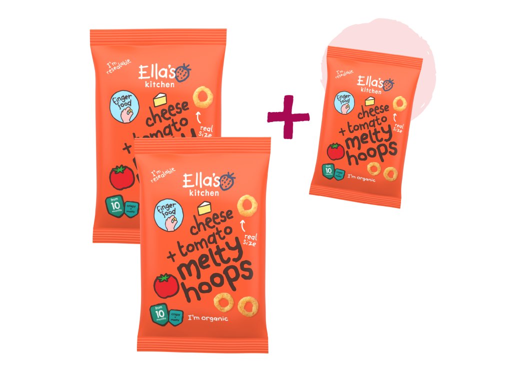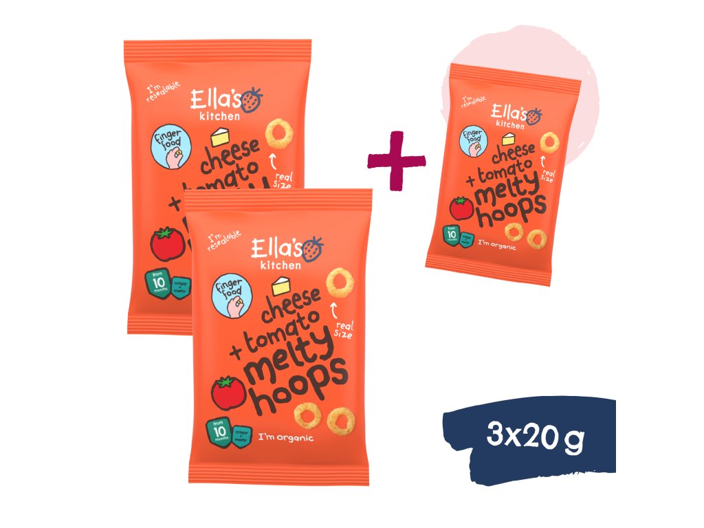 2+1 ZADARMO: Ella's Kitchen BIO Chrumkavé krúžky so syrom a s paradajkami (20 g)