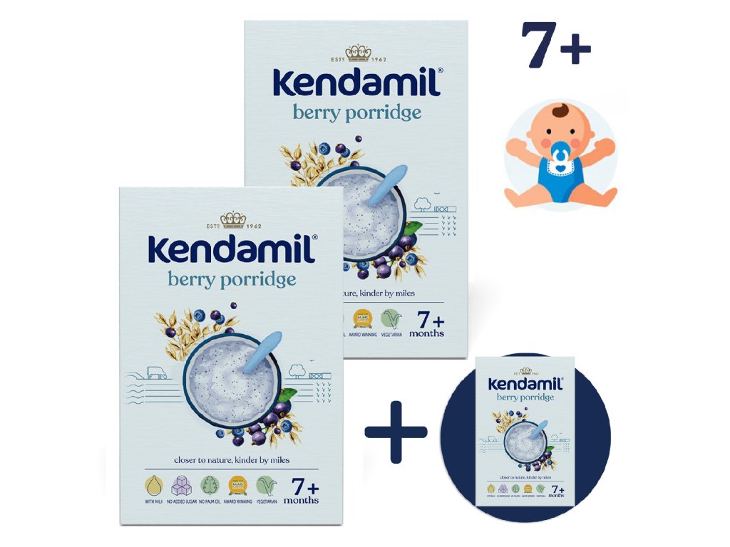 Táto výhodná sada 2+1 ZDARMA obsahuje 3 balenia Kendamil Mliečna kaša s lesným ovocím (150 g) za cenu dvoch kaší.