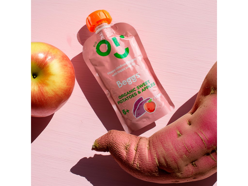 Zloženie: bio batáty (56 %), bio jablká (43 %), koncentrát bio citrónovej šťavy (1 %), vitamín C.