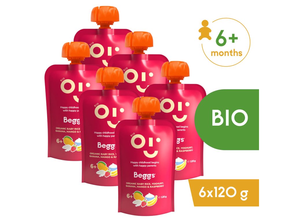 6x Beggs BIO Detská ryža s jogurtom, banánom, mangom a malinami (120 g)
