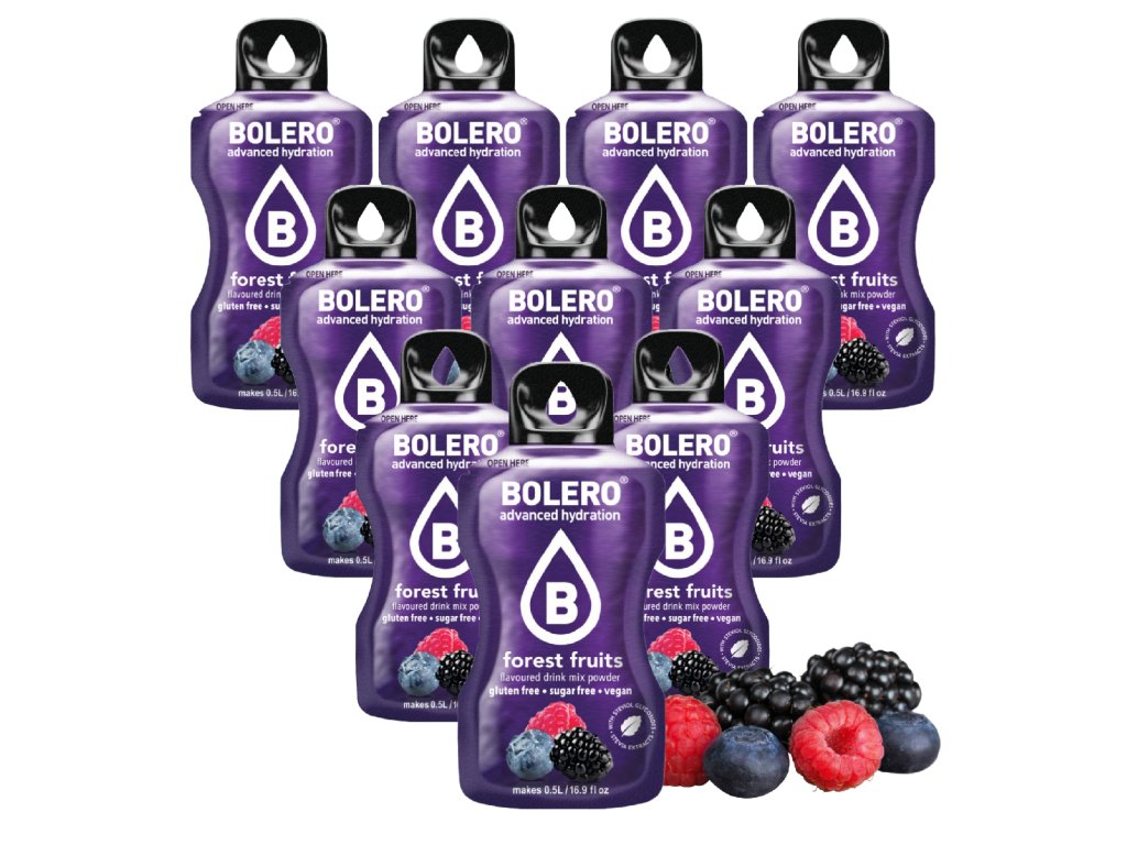 Nealkoholický nápoj v prášku s príchuťou lesného ovocia, so sladidlami. BEZ UMELÝCH FARBÍV A ARÓM. Bolero je originálna a široko použiteľľná zmes. Môže sa miešať s vodou, mliekom, čo je obľúbené najmä u detí, a dokonca aj s alkoholom, čo obľubujú dospelí. Návod na prípravu: obsah vrecúška rozmiešajte v 1,5 litri vody.