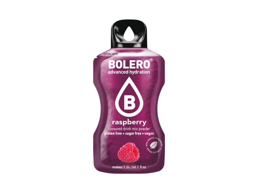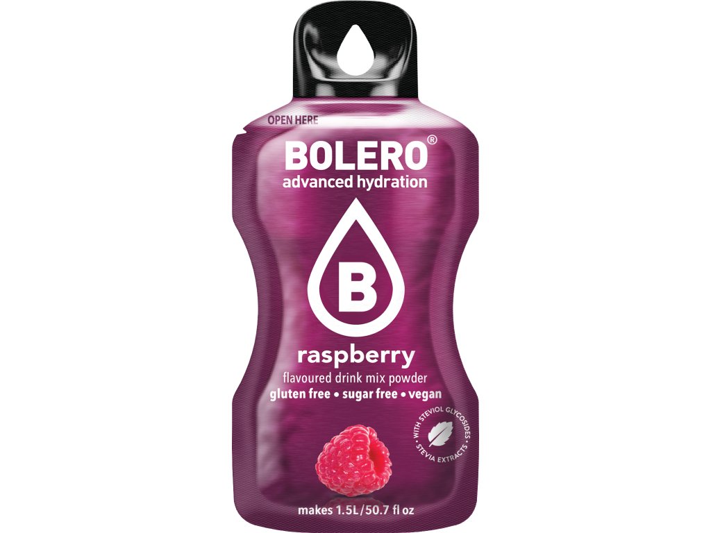 Nealkoholický nápoj v prášku s malinovou príchuťou, so sladidlami. BEZ UMELÝCH FARBÍV A ARÓM. Bolero je originálna a široko použiteľná zmes. Dá sa mixovať s vodou, mliekom, čo je obľúbené najmä u detí a dokonca aj s alkoholom, čo majú v obľube dospelí. Návod na prípravu: obsah vrecka rozmiešajte v 1,5 l vody.