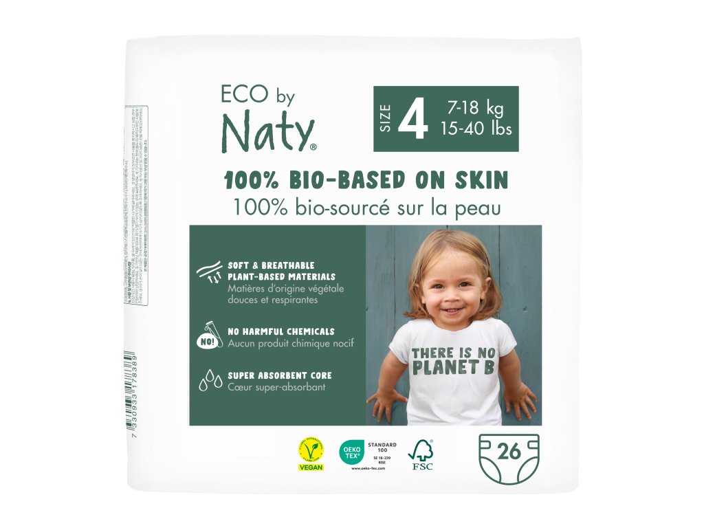 Šetrné, jemné a ekologické, to sú obľúbené plienky švédskej značky Eco by Naty pre deti s hmotnosťou 7–18 kg. Vďaka vylepšenému jadru teraz ešte viac sajú. Sú šetrné ako pre planétu, tak detský zadoček. Vnútorná vrstva dotýkajúca sa zadočku je z certifikovaného 100% prírodného biologicky odbúrateľného materiálu.