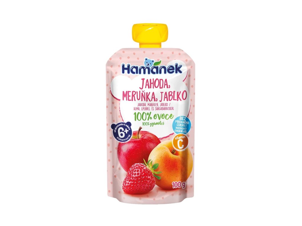 Hamánek Jahoda, marhuľa a jablko 100% ovocie 6m+ (100 g)
