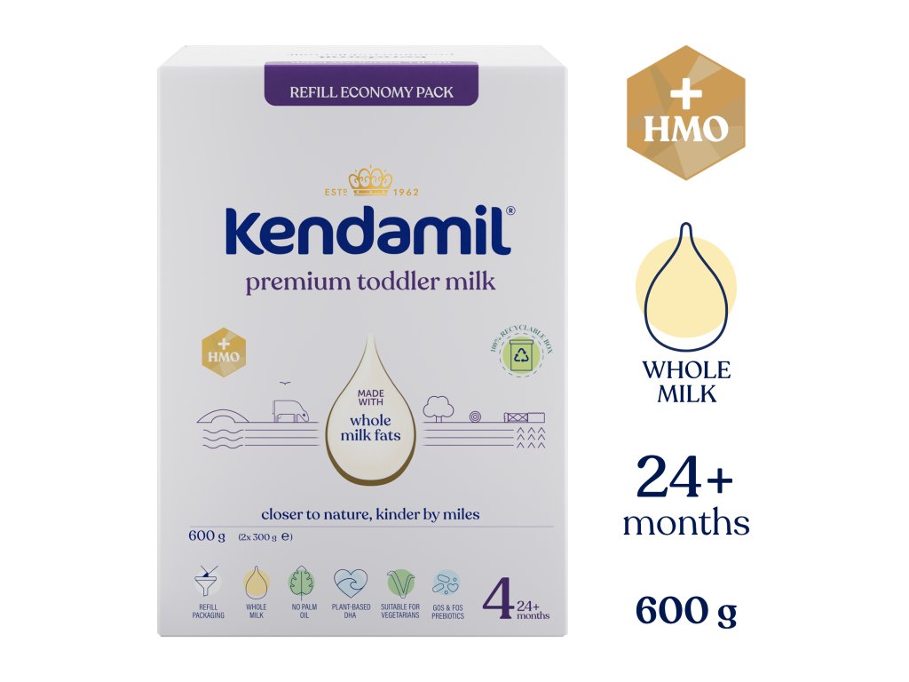 Dôležité upozornenie: Dojčenie je najlepším spôsobom výživy vášho dieťaťa. KENDAMIL PREMIUM 4 HMO+ je určené pre výživu malých detí od ukončeného 24. mesiaca a malo by tvroiť iba súčasť zmiešanej a vyváženej stravy malého dieťaťa. Pri kŕmení z flaštičky, zamedzte nepotrebnému predlžovaniu kontaktu cumlíka so zúbkami, zvyšujete tým riziko zubného kazu. Starajte sa o hygienu ústnej dutiny dieťaťa, predovšetkým pred spaním. Dodržujte pokyny na prípravu, kŕmenie a skladovanie, inak ohrozíte zdravie dieťaťa. Nie je určené pre deti do 12 mesiacov.