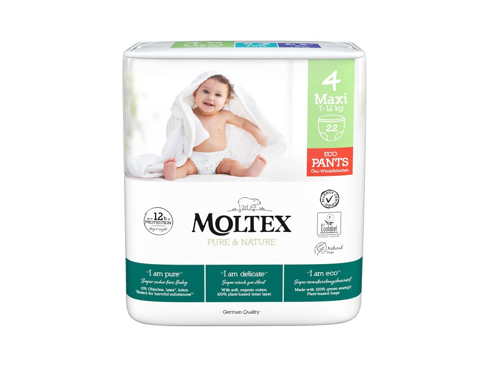 Moltex Pure & Nature Maxi 7–12 kg (22 ks), eko plienkové nohavičky