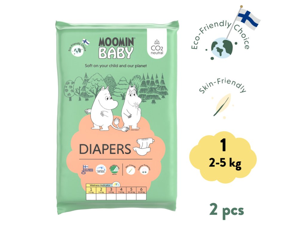 Moomin Baby 1 Newborn 2–5 kg (2 ks), eko plienky