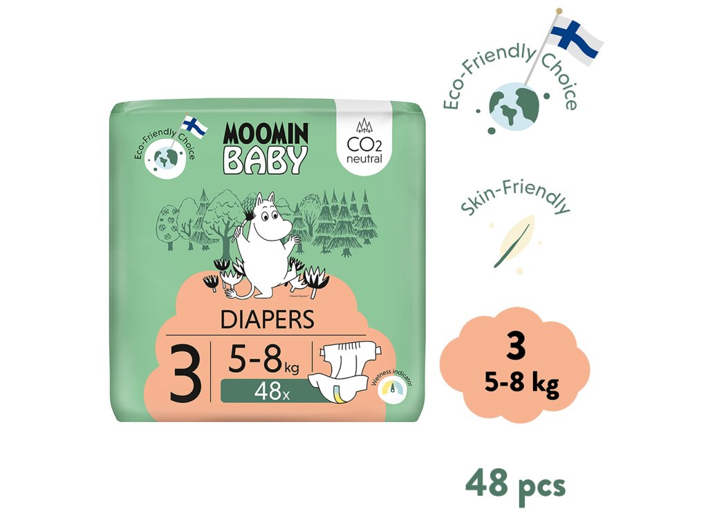 Moomin Baby 3 Midi 5–8 kg (48 ks), eko plienky
