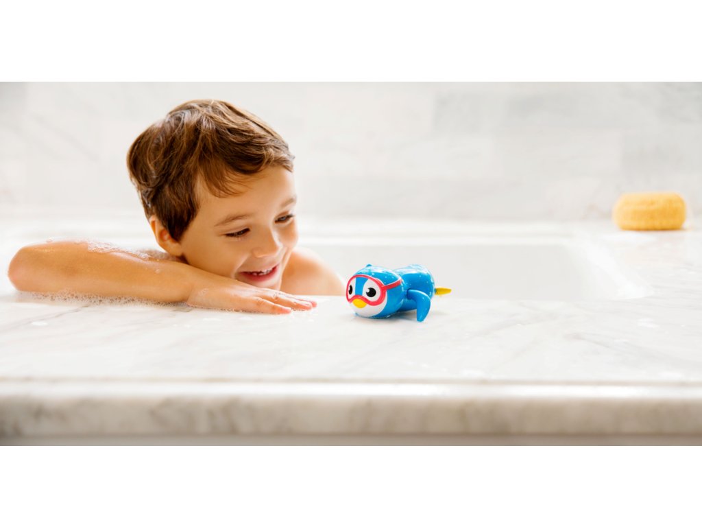 Pripravené, nastavené... PLÁVAŤ! Ak sa vaše dieťa rád hrá vo vani, určite sa mu bude páčiť tento roztomilý tučniak, ktorý bude jeho spoločníkom pri kúpaní. Tučniak vo vode naozaj pláva, takže táto hračka bude zaručene úspešná.