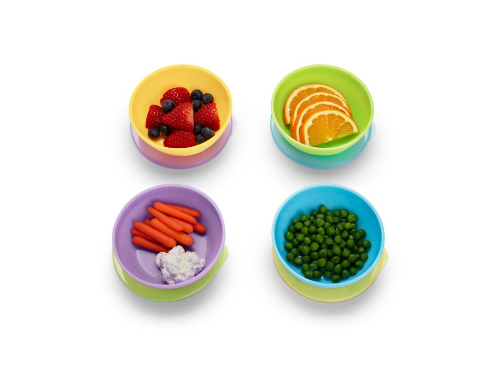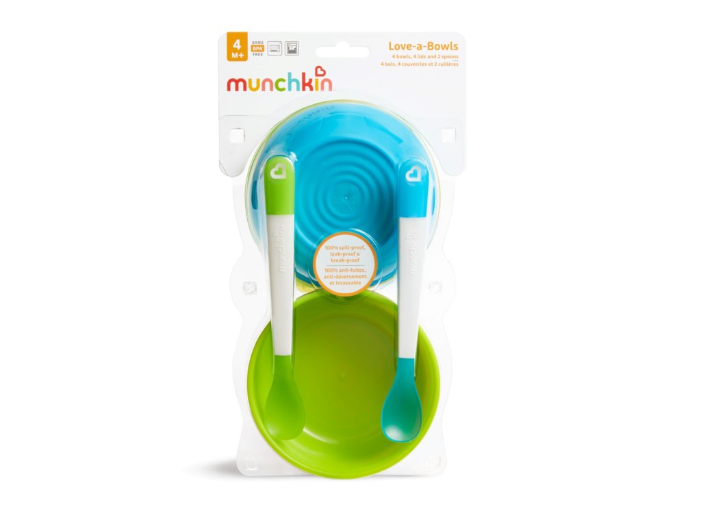 Keď deti prechádzajú z fliaš na pevnú stravu, zdá sa, že nikdy nie je dostatok misiek na uspokojenie ich rastúcich potrieb - alebo na zvládnutie nevyhnutného neporiadku. Aspoň zatiaľ. Naše misky Love-a-Bowls majú 100% záruku, že sa nerozlejú, nevytečú ani nerozbijú. Môžete si byť istí, že ich použitie je bezpečné prakticky kdekoľvek, vrátane mikrovlnných rúr, mrazničiek a umývačiek riadu. Táto sada štyroch vymeniteľných misiek sa dodáva so štyrmi viečkami a dvoma lyžičkami s mäkkou špičkou, čo z nej robí dokonalý štartovací balíček pre prvé dni pevného kŕmenia. Tieto misky sú ideálne na všetko od detskej výživy až po občerstvenie pre batoľatá, ľahko sa skladujú a zaneprázdnené mamičky si ich môžu ľahko vziať so sebou na cesty. A keď je čas ich odložiť, dajú sa veľmi dobre zložiť pre ľahké skladovanie. Zásobte sa touto farebnou súpravou na kŕmenie - misky a lyžice si určite vyslúžia trvalé miesto vo vašej kuchyni (a vo vašom srdci).
