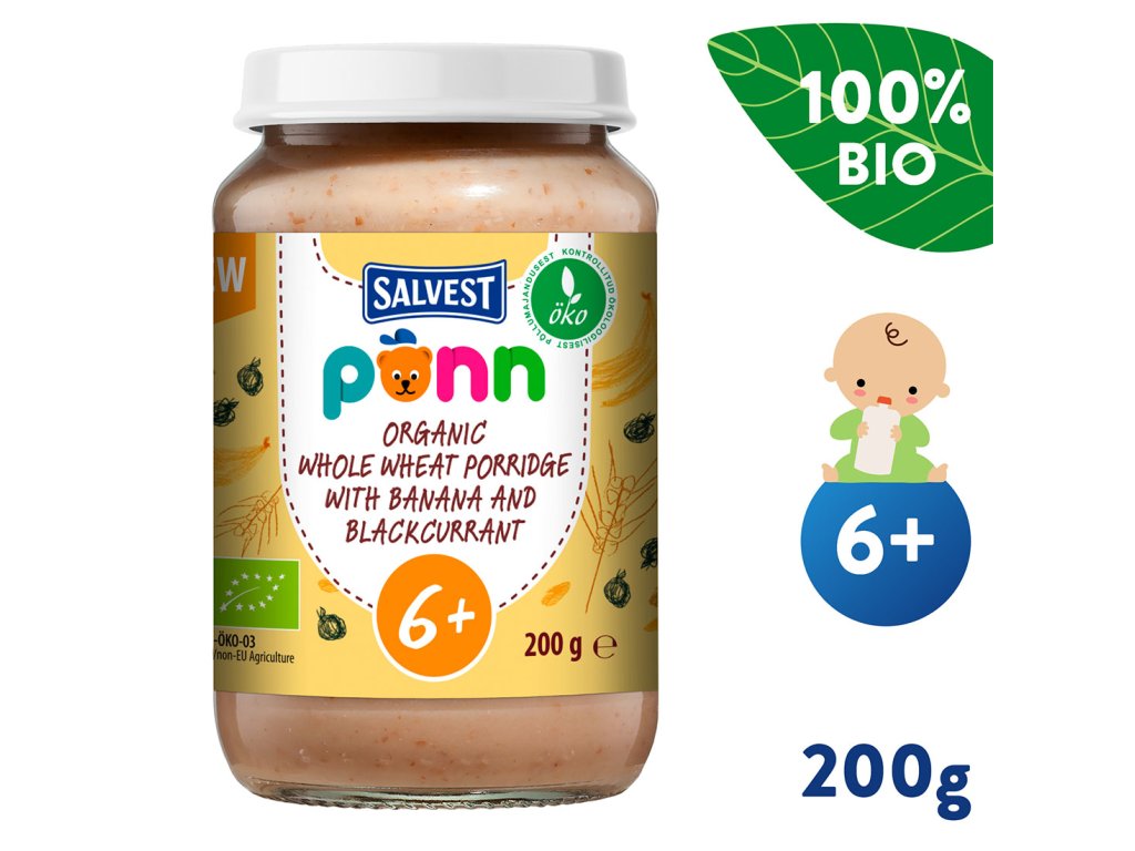 SALVEST Põnn BIO Celozrnná kaša s banánom a čiernou ríbezľou (200 g)